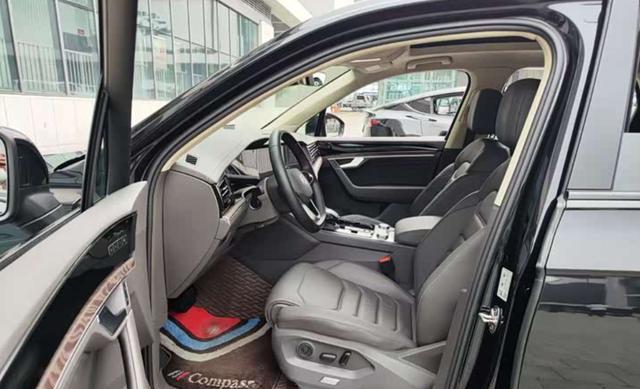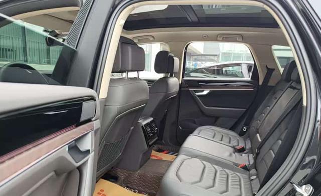 尾部造型也很简单大气,尾灯是当下贯穿式的设计,还有双排气筒,笔直的腰线从尾灯勾勒而出,就像是刀割一样,搭配下裙线、多幅式铝合金轮毂,进一步凸显出整车的运动气息。尺寸上,大众途锐的车身长宽高分别为4889mm、1984mm、1697mm,轴距长度为2899mm,虽然不如奥迪Q7、卡宴那么大,但是实际的空间很宽敞,毕竟,这款车是一台五座车。