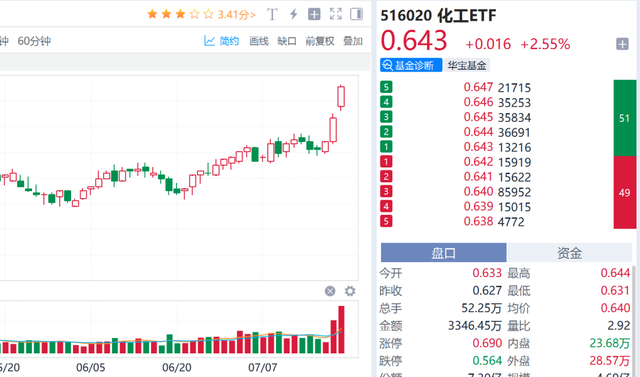 化工ETF(516020)近三个交易日实现三连阳,同时成交额也放量大增。